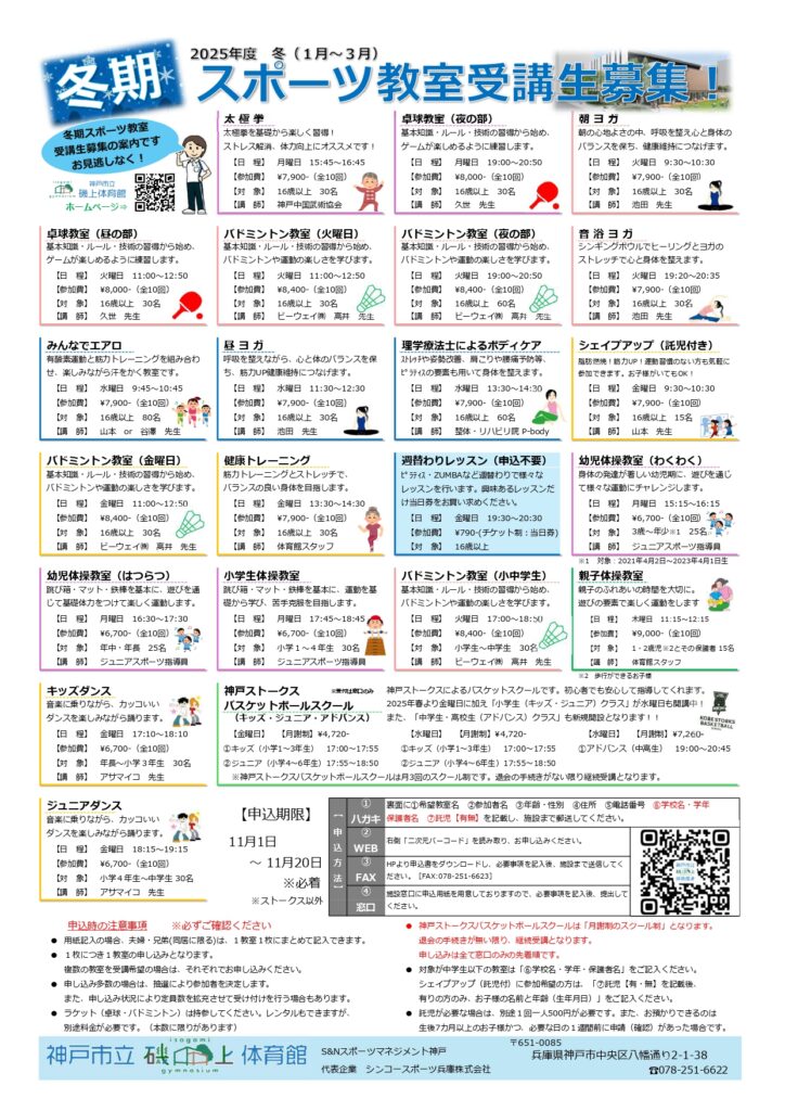 2025年度冬期スポーツ教室(2026年1月スタート)の申し込みがスタートしました!